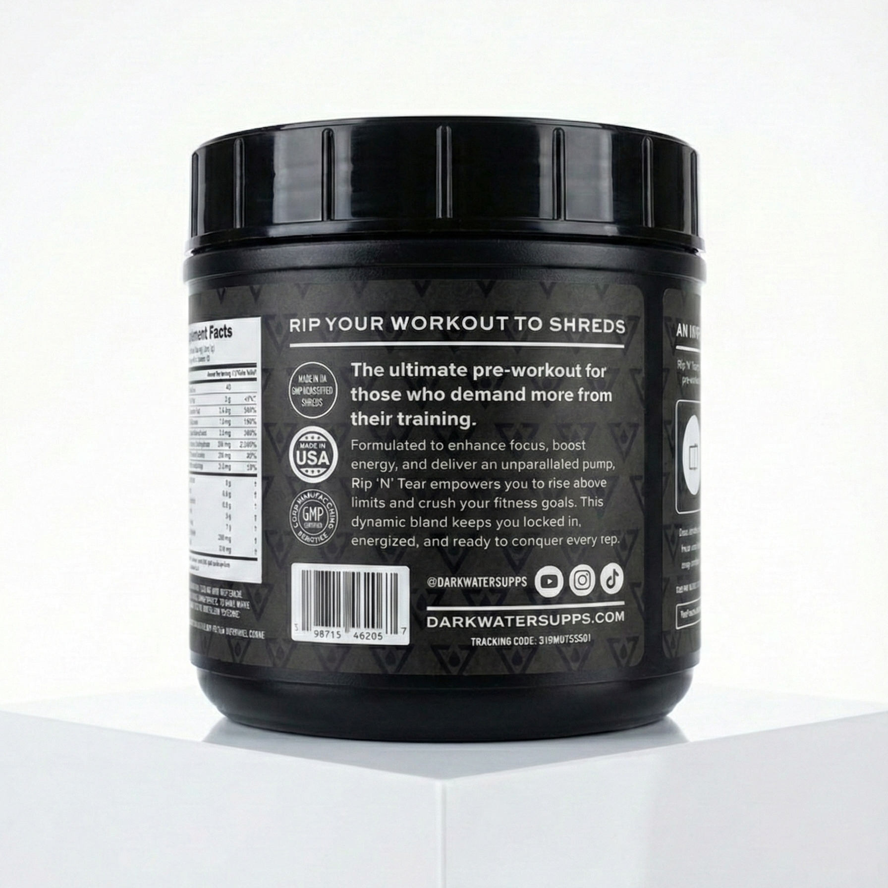 Rip N' Tear is the perfect blend of clean ingredients designed for the weightlifter that isn't willing to sacrifice for poor ingredients and underwhelming performance. Dark Water Supplements goes above and beyond and takes great pride in any supplements we release. We are proudly based in the USA - Florida.