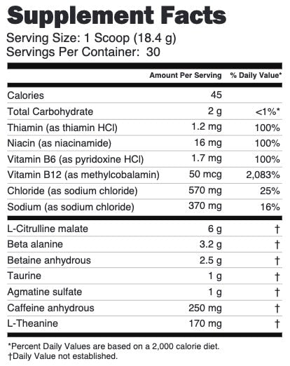 Love the transparency in the ingredients, gives me everything I need to have a great workout and not tear up my stomach 10/10